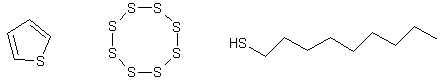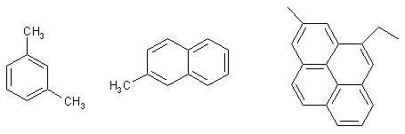 Some of the interesting and gluggy compounds found in crude oil are shown below; in the first three, a common chemical shorthand for drawing carbon skeletons is introduced - unless shown otherwise, everything is assumed to be a carbon substituted with as many hydrogens as it can manage.