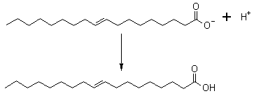 The protonated soap molecule does not have a charged head, so it is no longer soluble in water. The soap molecules precipitate out forming a cloudy mixture, which (like hard water) leads to the formation of a scum. Soaps are not suitable for use in acidic conditions.