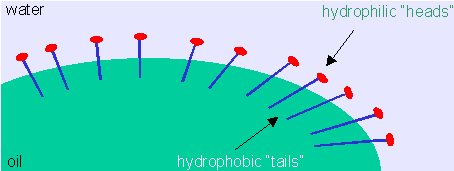 Properties of SurfactantsThe molecular structure of surfactants means that they have unusual properties, leading to both widespread and highly specialised applications. The properties of surfactants fall into two broad categories: adsorption and self-assembly. AdsorptionAdsorption is the tendency for a surfactant molecule to collect as an interface. Adsorption is very different to absorption (don't get them confused!):